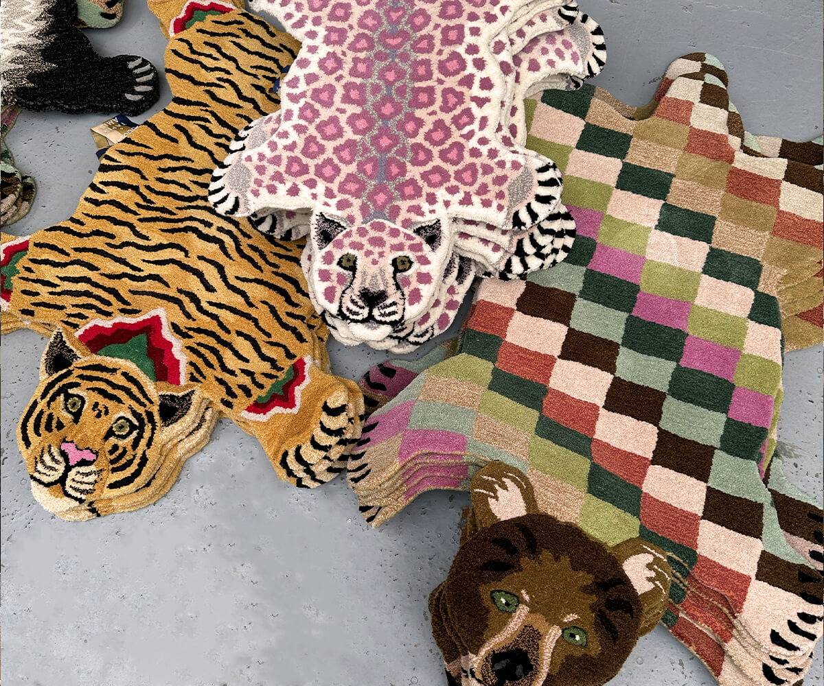 We draw inspiration from unique finds and vintage treasures to design our own fun-filled collection of animal rugs, brass goods, textiles and more.