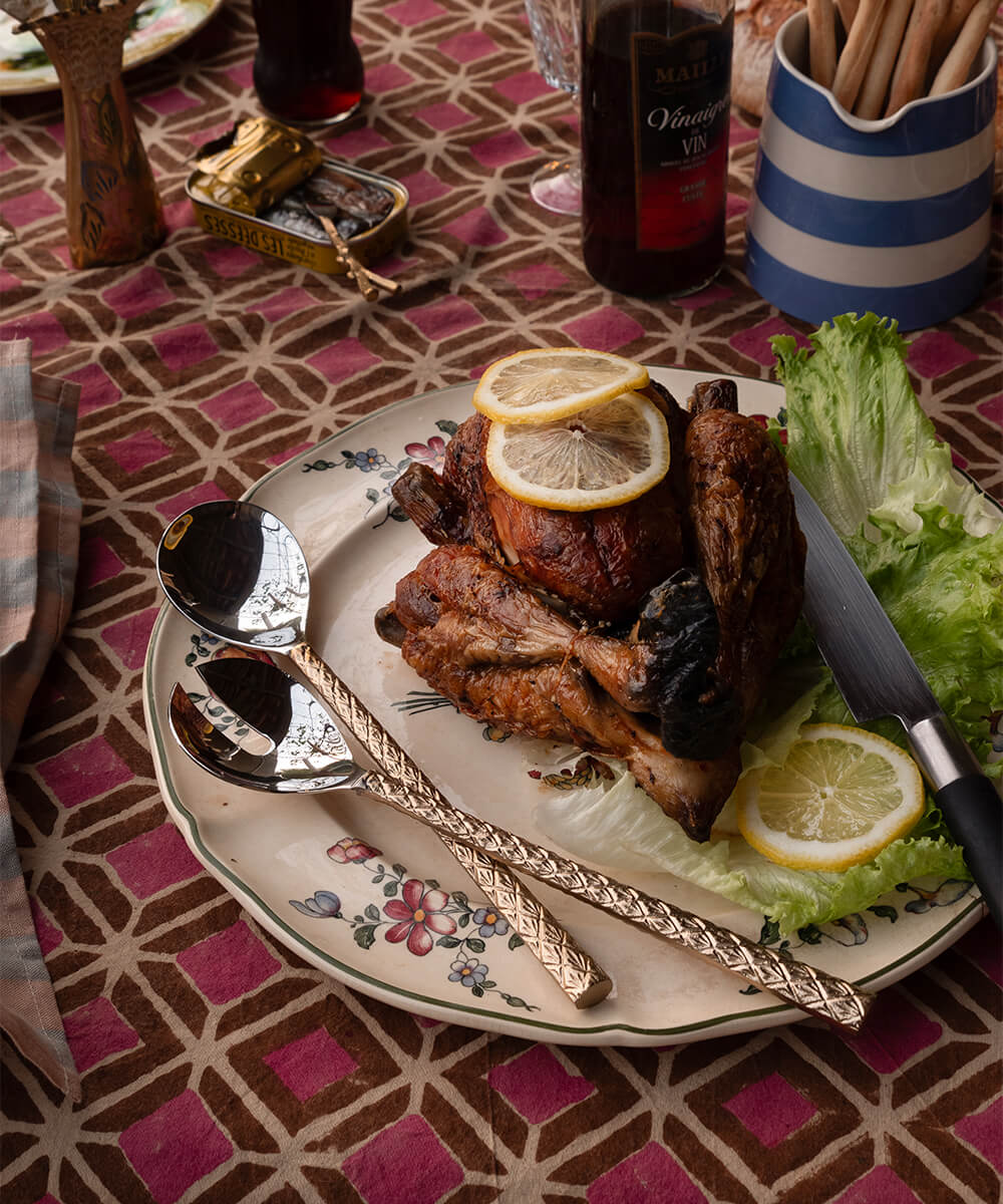 Serve your salad with this lovable salad server, made of brass and stainless steel.