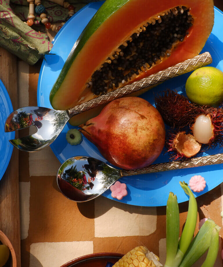 These butter knives are handmade in India. Due to the handcrafted nature of this item, expect slight variation in the appearance of each knife. Perfect by no means, but unique all the more!