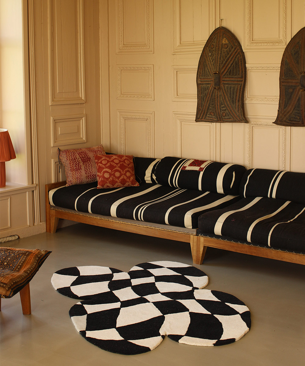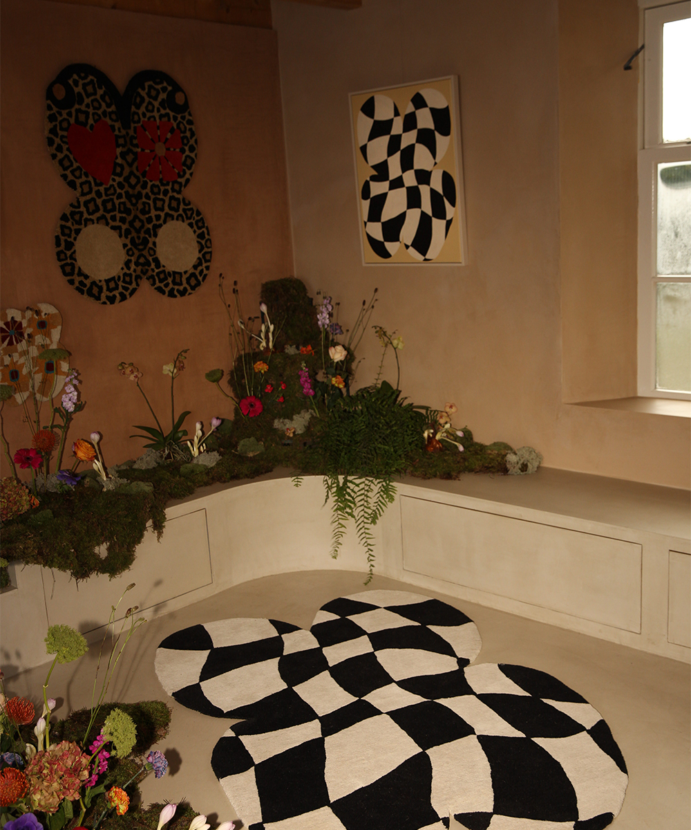 The Cleo Checkered Butterfly Rug XL is part of the exclusive Les Papillons collection by Doing Goods – a special collaboration with Dutch artist Susan Kelly Meinen, blending modern art with timeless craftsmanship.