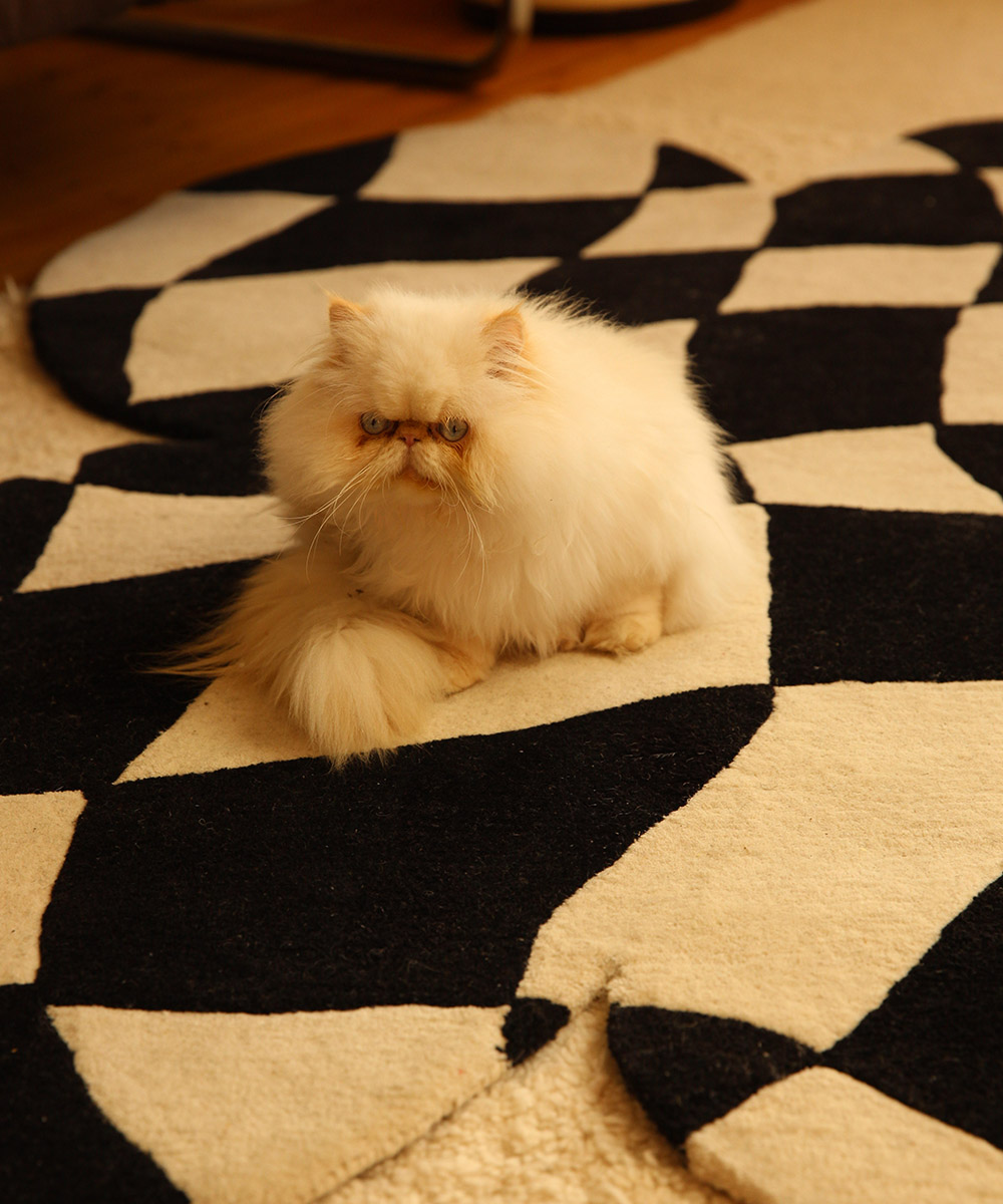 With its bold black-and-cream checkerboard pattern and whimsical butterfly shape, this rug brings a touch of retro charm and artistic elegance to any space. Perfect for those who love design with personality.