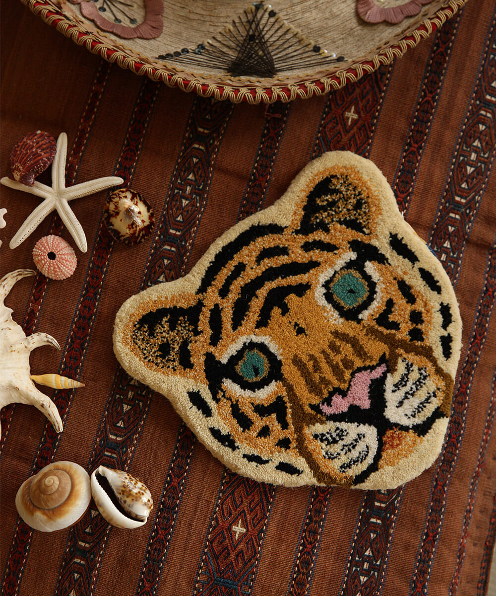 This lovely Cloudy Tiger Head Rug can be used as wall decoration or as an accent to your floor or dining bench. They will cheer up any room. The Cloudy Tiger Head Rug is part of our very own Tapis...