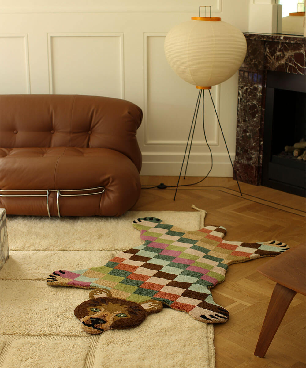 Der Teppich ist Teil unserer eigenen Tapis Amis-Kollektion, einer Reihe entzückender Wesen aus dem Tierreich, die dich jeden Tag zum lächeln bringen werden. Dieser Teppich wird in Indien aus 100% Wolle, mit Baumwoll-Rücken handgefertigt.