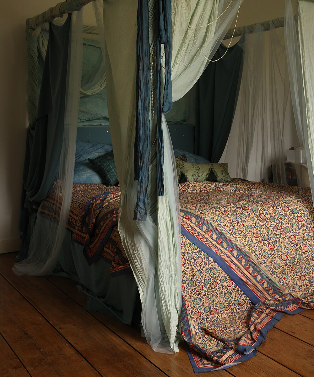 Zu unserem handbedruckten Bluebell Double Plaid gibt es jetzt auch eine passende Tragetasche! Sie wird von unserem Team in Indien in liebevoller Handarbeit aus 100% Baumwolle hergestellt. Egal, ob Sie es auf Ihrem Bett ausbreiten oder Ihren Tisch damit dekorieren, die passende Tragetasche sorgt dafür, dass Ihr geliebtes Tuch geschützt und bereit für Ihre nächsten Unternehmungen bleibt.