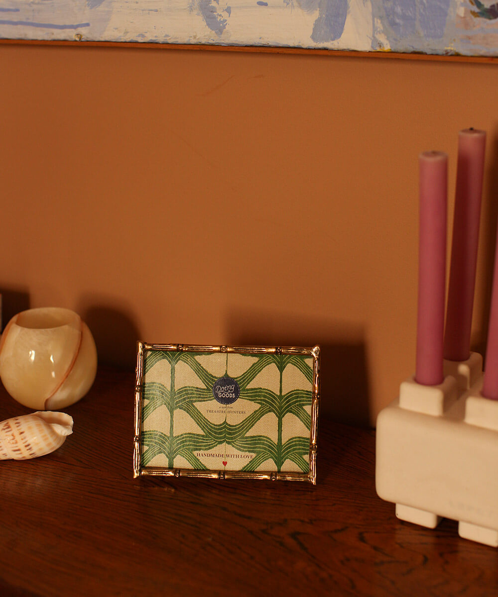Dieser Rahmen wird in Indien aus 100% recyceltem Messing handgefertigt. Jeder Artikel ist ein Unikat, leichte optische Abweichungen sind möglich.