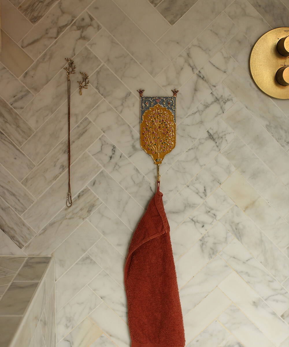 Dieser Haken wird in Indien von Hand gefertigt. Jeder Artikel ist ein Unikat, weshalb es zu optischen Abweichungen kommen kann. Auf keinen Fall perfekt, dafür umso einzigartiger!