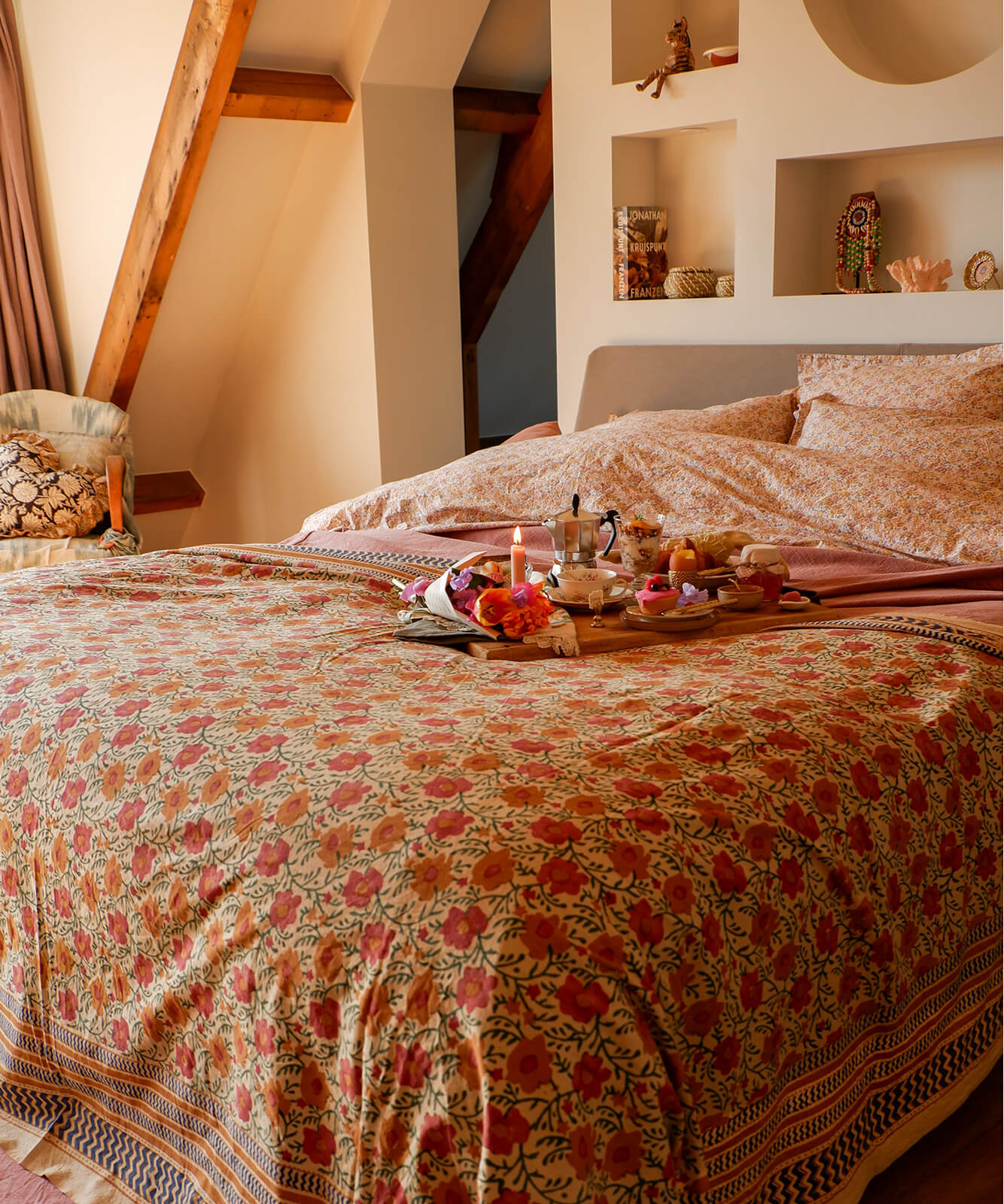Dieser Evy Überwurf wird von Hand mit Holz-Stempeln bedruckt und ist vielseitig einsetzbar. Ob als Überwurf für Bett und Sofa oder für dein nächstes Picknick oder Strandsession, dieses Plaid ist ein echter Blickfang.
