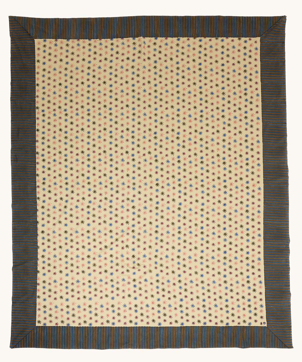 Suchen Sie nach einem vielseitigen Plaid, das als Tagesdecke, für Strandtage oder Picknicks im Park verwendet werden kann? Das Noa Stern Double Plaid ist dafür entworfen, jedem Anlass eine fröhliche Atmosphäre zu verleihen. Mit einer großzügigen Größe von 240 x 280 cm ist dieses Plaid perfekt für runde Tische, Betten oder Outdoor-Abenteuer. Das Noa Stern Plaid zeigt ein lebhaftes Muster aus bunten Sternen auf einem warmen beigen Hintergrund, akzentuiert mit kräftigen Streifen für ein auffälliges Design. Handgefertigt aus 100% Baumwolle von unseren talentierten Handwerkern in Indien, die traditionelle Blockdrucktechniken anwenden, ist jedes Stück einzigartig und voller Charakter.
