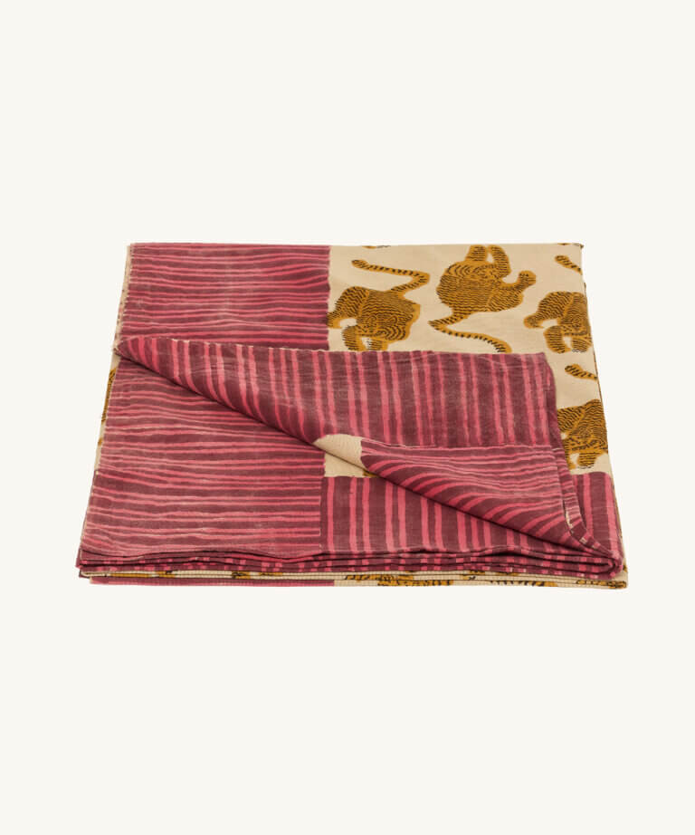 Dieser Powder Tiger Einzel-Überwurf wird von Hand mit Holz-Stempeln bedruckt und ist vielseitig einsetzbar. Ob als Überwurf für Bett und Sofa oder für dein nächstes Picknick oder Strandsession, dieses Plaid ist ein echter Blickfang.Es wird in einer passenden Tragetasche geliefert.
