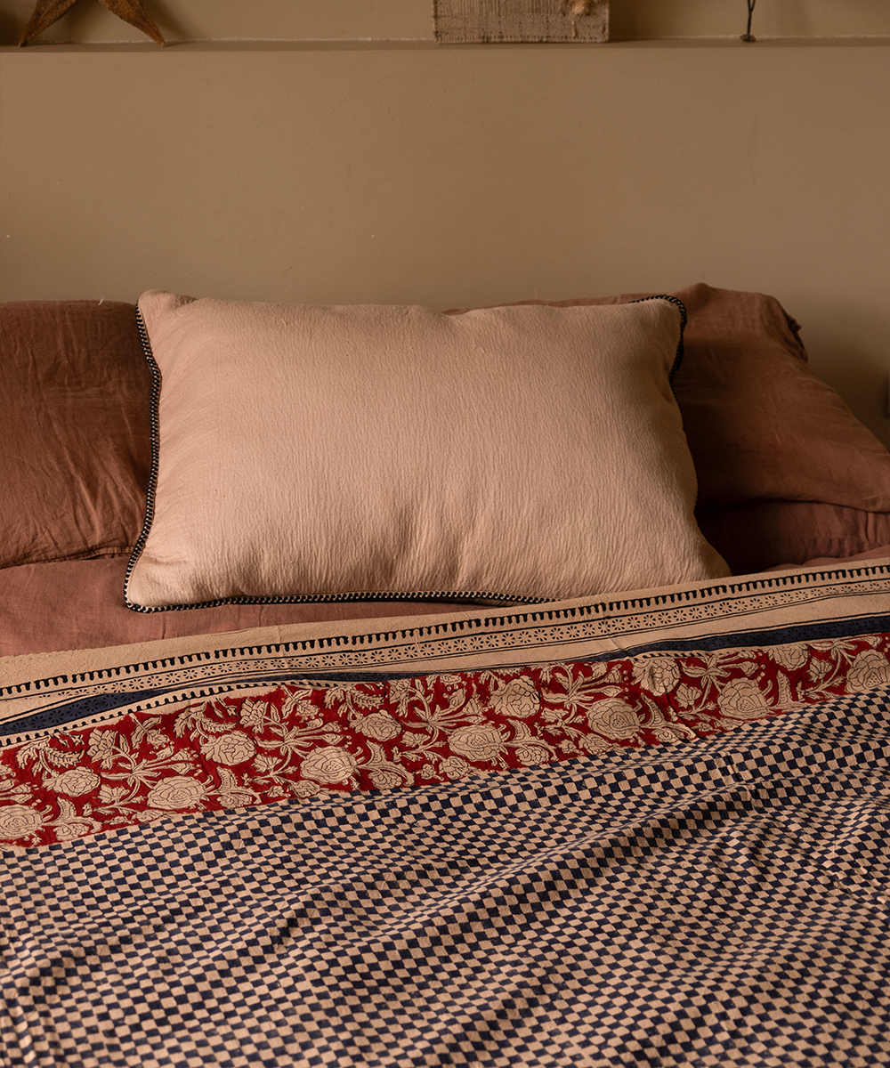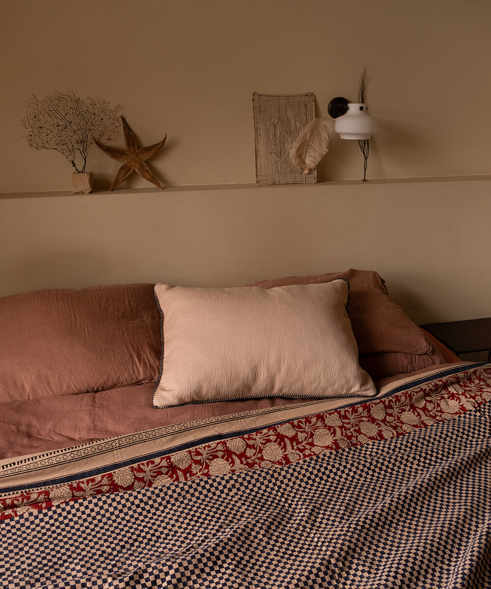 Dieser Rumi Überwurf wird von Hand mit Holz-Stempeln bedruckt und ist vielseitig einsetzbar. Ob als Überwurf für Bett und Sofa oder für dein nächstes Picknick oder Strandsession, dieses Plaid ist ein echter Blickfang.Es wird in einer passenden Tragetasche geliefert.