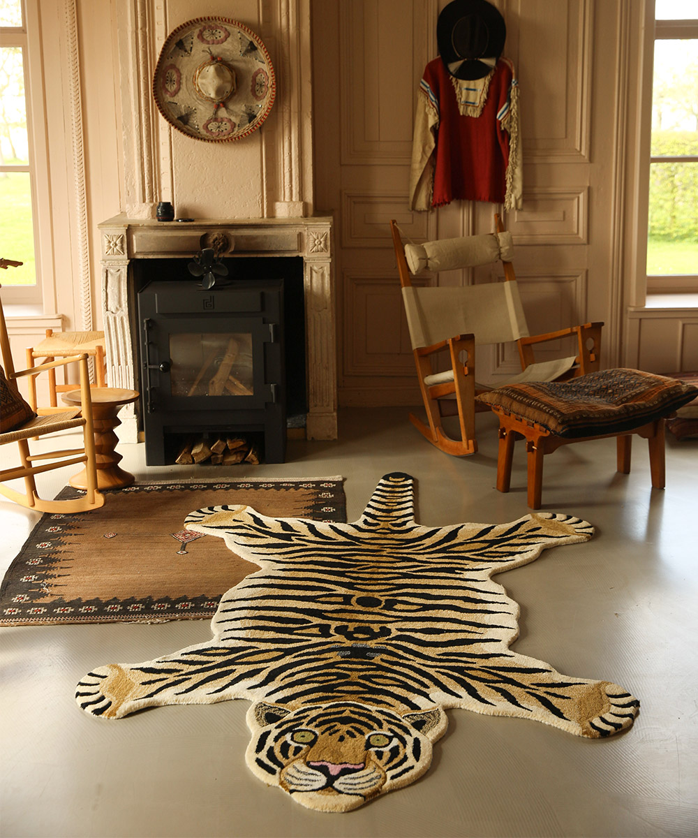 This XL version is a beautiful addition to the existing Small and Large Drowsy Tiger rugs. Now you can choose from three sizes to perfectly suit any space and style. For those who love to make a bold statement with an original piece, this design is made to last for generations.