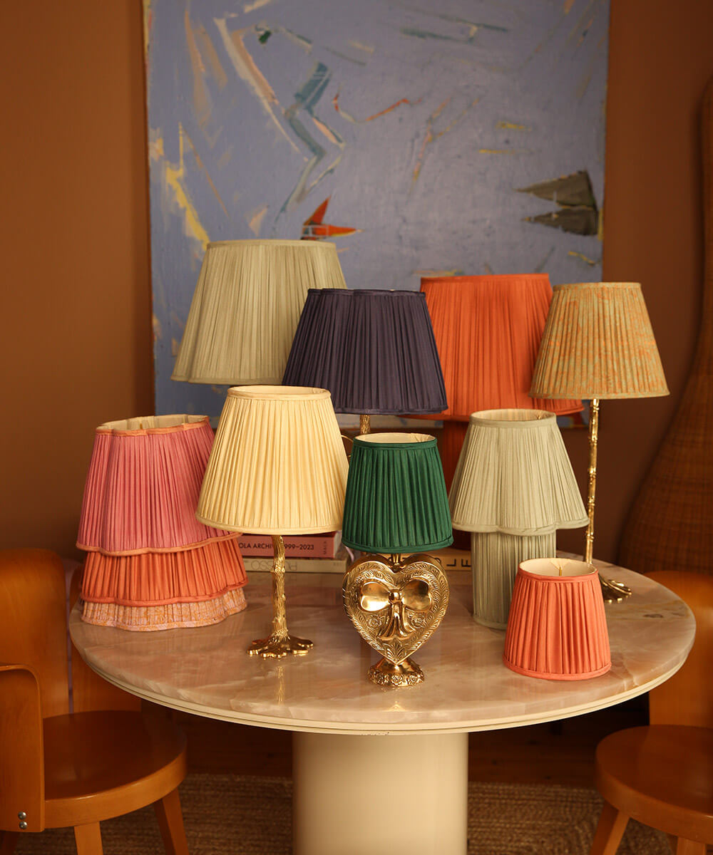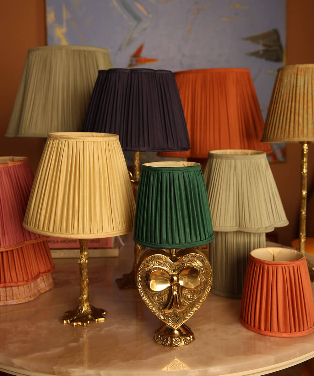 Apportez une touche d'élégance intemporelle à votre intérieur avec l'abat-jour Kiara Émeraude. Parfaitement dimensionné à 15 x 11,5 x 16 cm, ce petit abat-jour s’adapte à une variété de pieds de lampe tout en ajoutant une note raffinée et colorée à votre décoration. Conçu dans un somptueux mélange de soie et de viscose, il présente un design plissé dans une teinte vert émeraude profonde, évoquant sophistication et chaleur. Que ce soit dans un coin lecture confortable, sur une table de chevet ou en pièce maîtresse dans votre salon, cet abat-jour sublime facilement n'importe quelle pièce. Faisant partie de la collection Heart Lights, il constitue un ajout unique et stylé à votre éclairage.