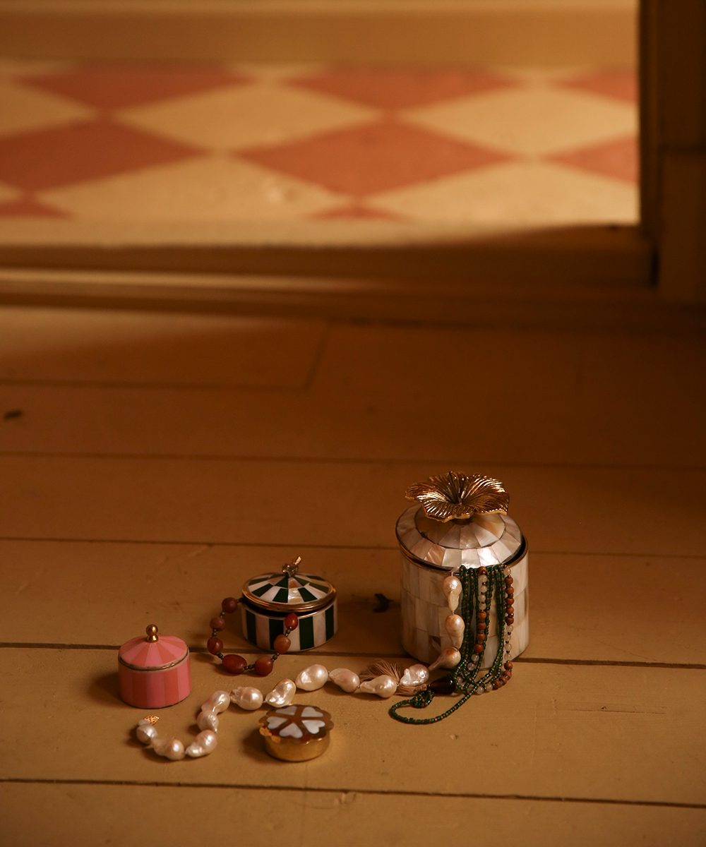 Rangez vos bijoux préférés dans cette ravissante boîte à bijoux rose. Fabriquée à la main avec amour en Inde, cette pièce étonnante est confectionnée à partir de laiton recyclé et de résine, assurant que chaque achat soutient les artisans locaux...
