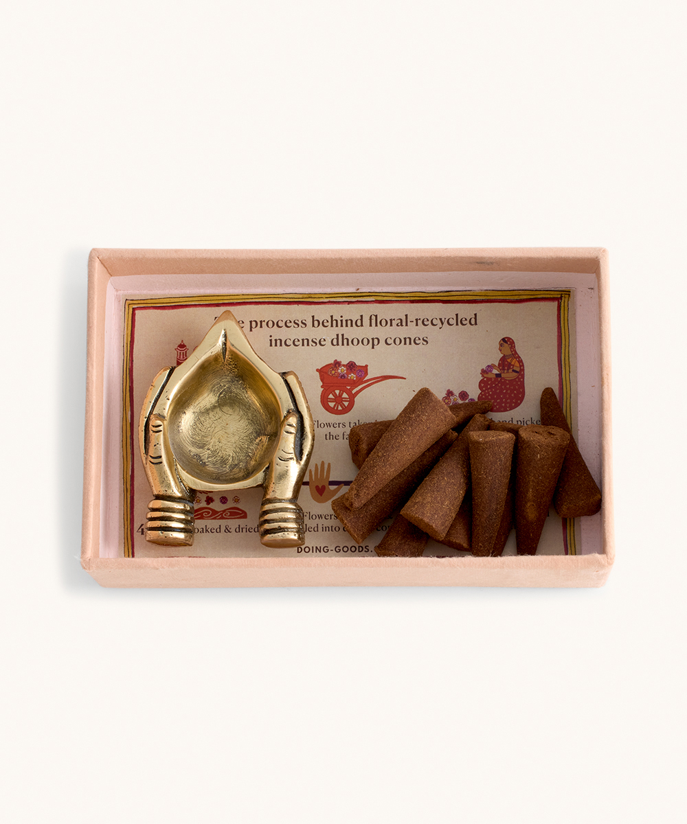- Cônes d'encens dhoop: Fabriqués à partir de fleurs recyclées, de charbon et de matériaux sans bambou, ces cônes offrent environ 30-40 minutes de parfum délicieux.
