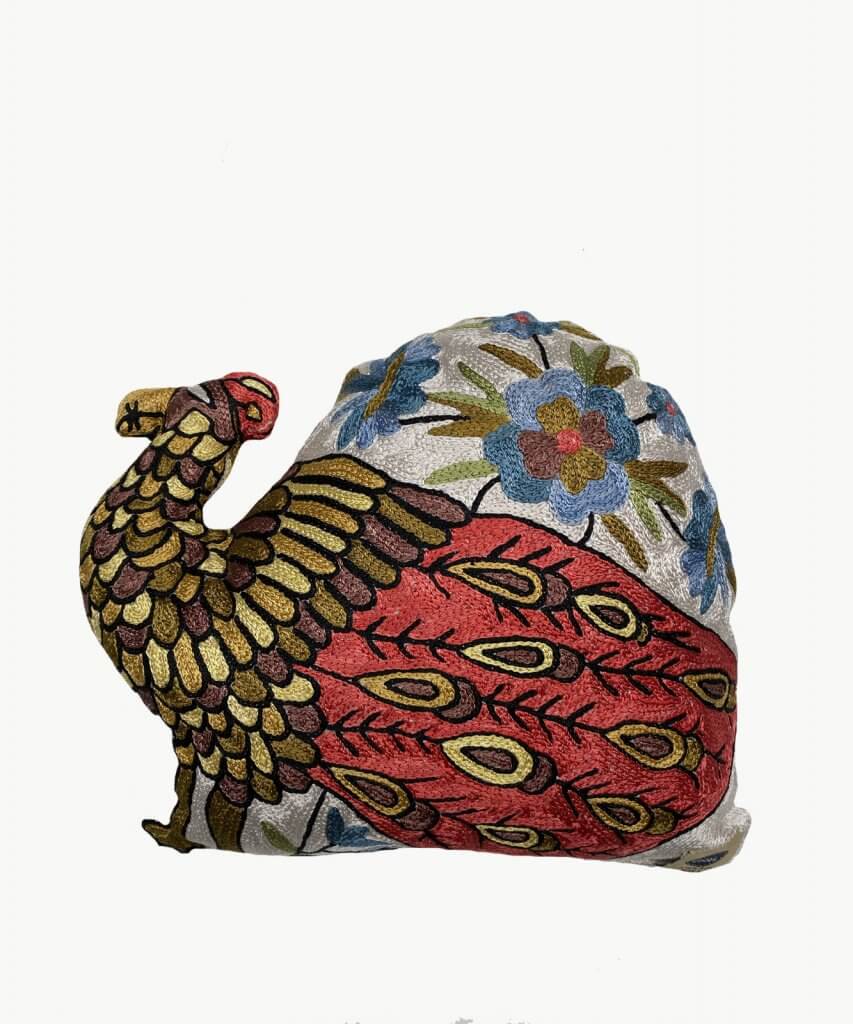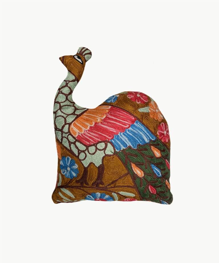 Ce coussin Peacock entièrement brodé aux motifs colorés en fait l'article le plus heureux de chaque maison.