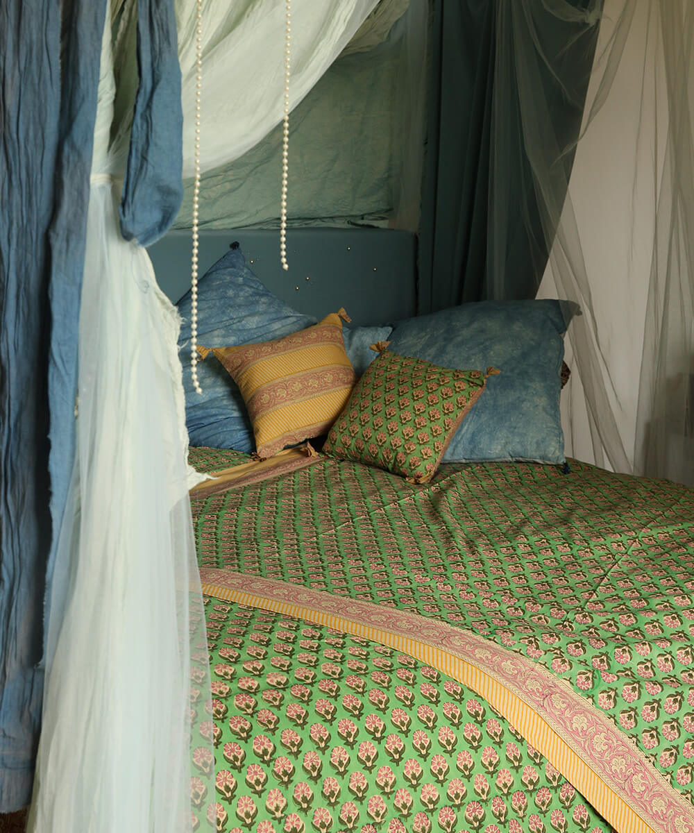 Ces plaids uniques sont fabriqués à la main, en Inde. Ils sont composés à 100 % de coton.