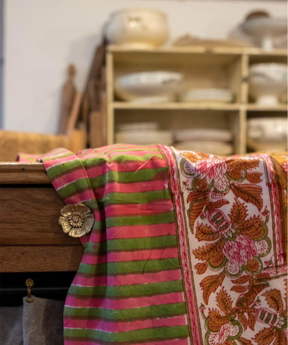 Tous nos textiles sont faits à la main grâce aux techniques d'impression au bloc.