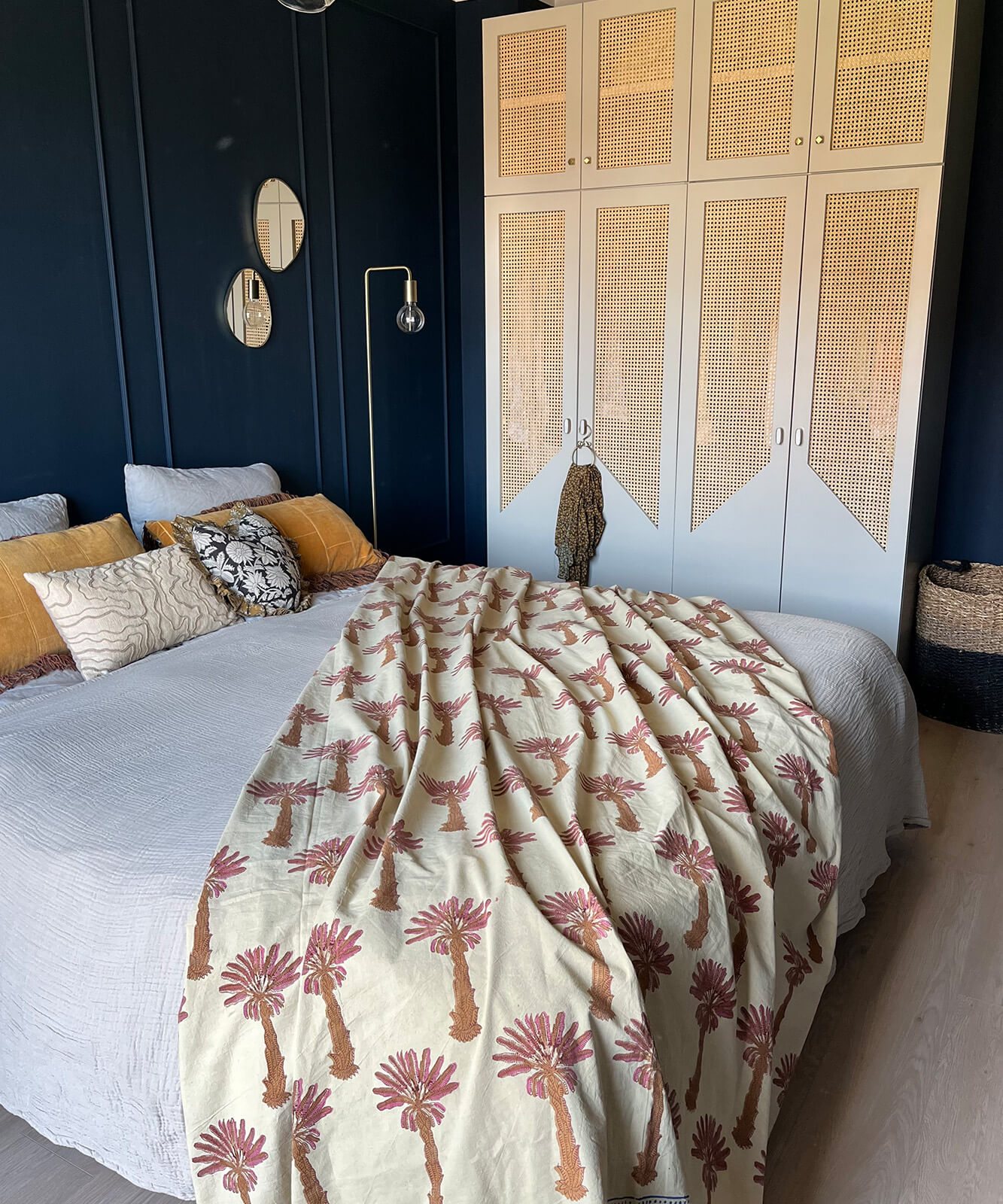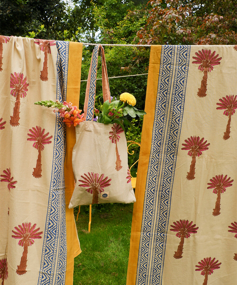Ce plaid Tala Palmtree est imprimé à la main avec des blocs de bois sculptés et s’adapte à différents usages. Déposez-le sur votre lit, sur votre canapé ou emmenez-le avec vous pour une journée à la plage ou lors d’un pique-nique.Le plaid est livré dans un sac fourre-tout assorti.