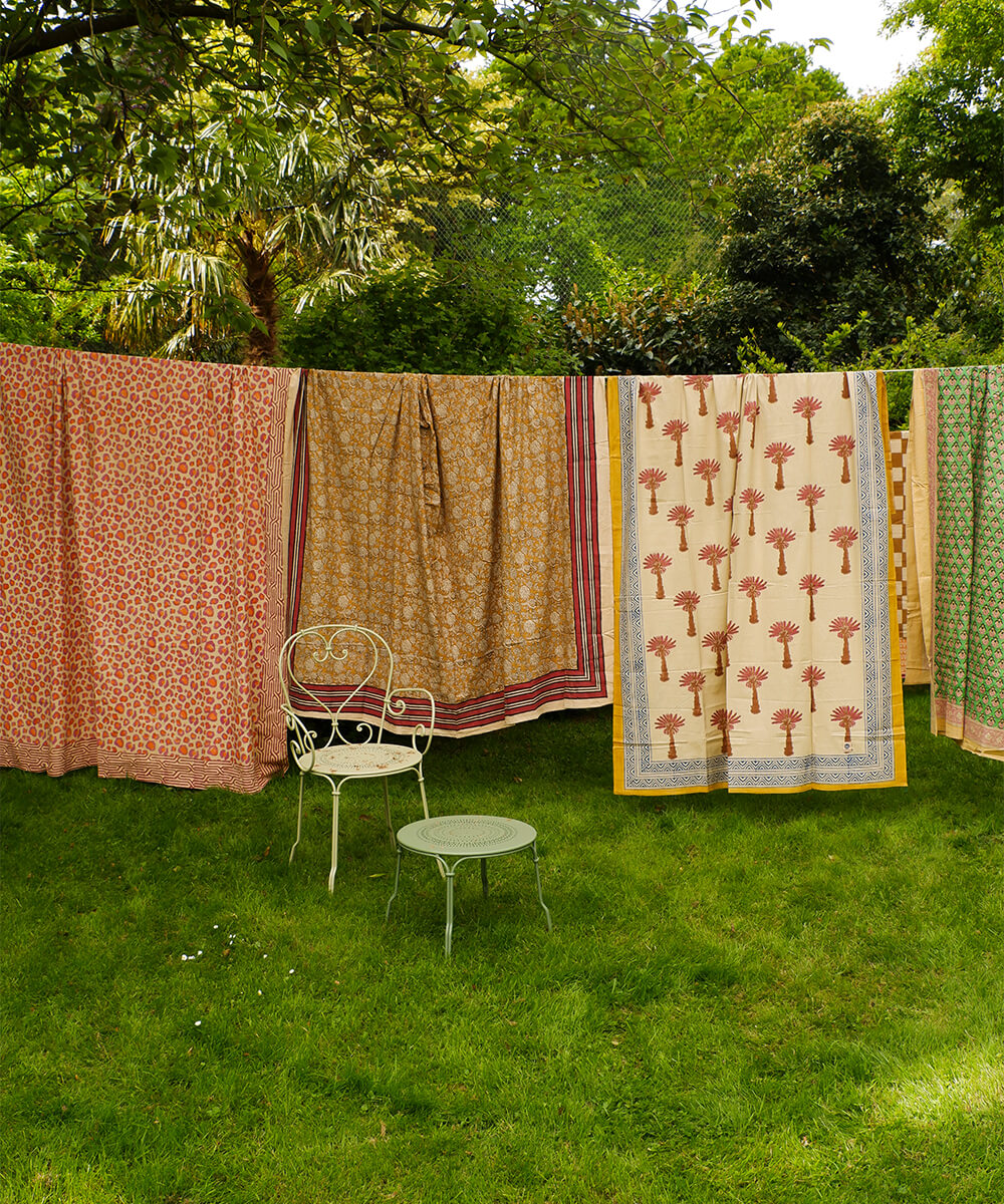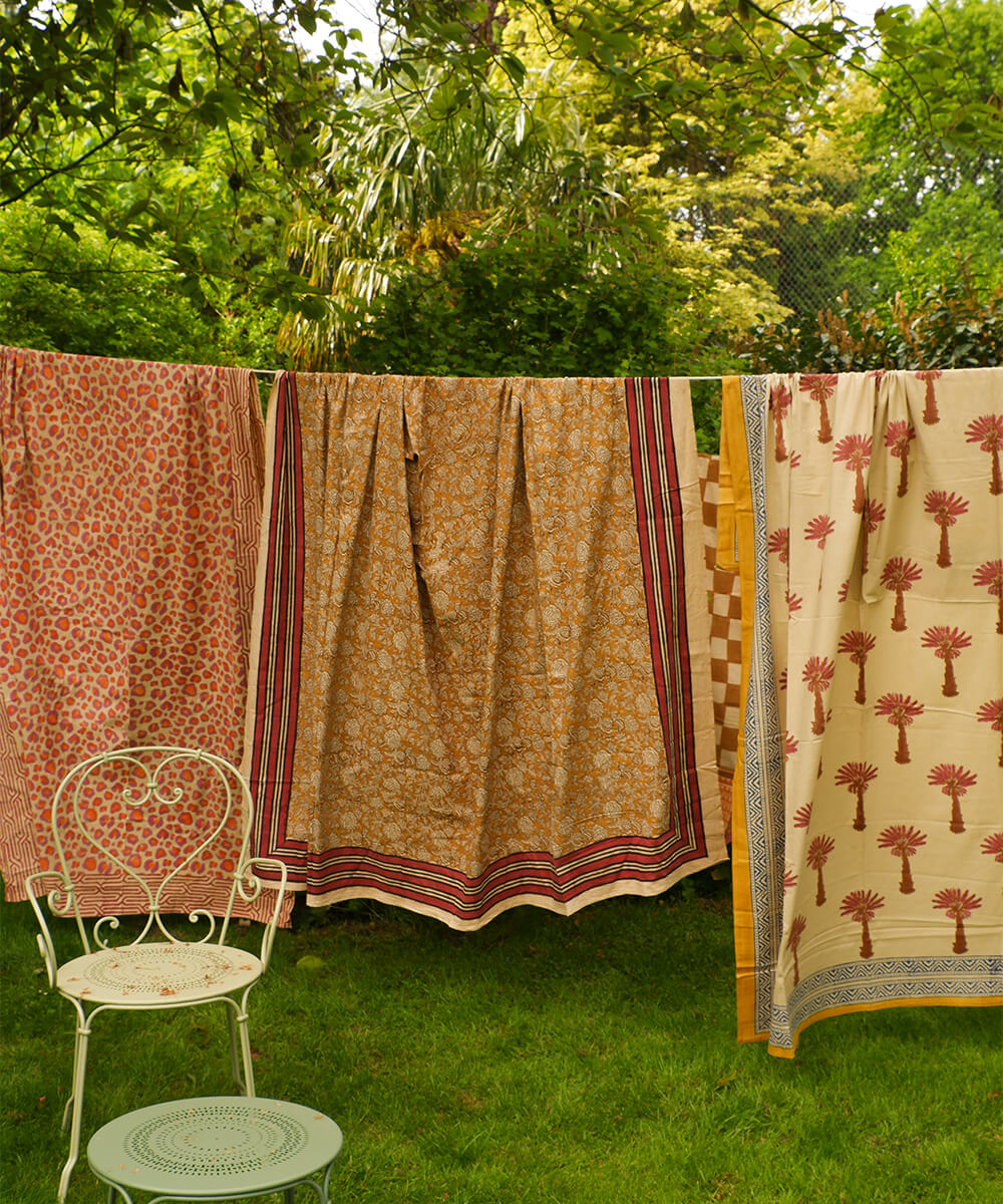 Tous nos textiles sont faits à la main grâce aux techniques d'impression au bloc.