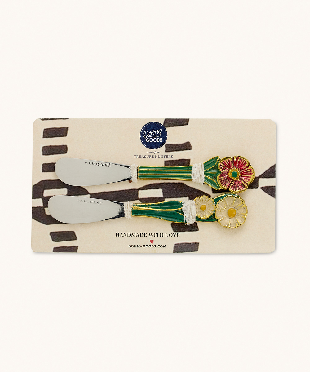 - Ludique et Fonctionnel : Allie un design floral fantaisiste à la praticité, parfait pour tartiner beurre, confitures ou fromages frais.