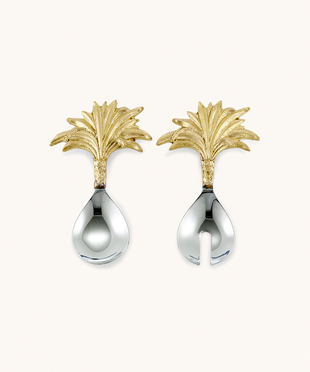Apportez une touche romantique et élégante à votre table avec le Set de Couverts à Salade Holly Cœur. Cet ensemble raffiné comprend une grande cuillère et une grande fourchette, chacune dotée d’un manche décoré d’une rangée de petits cœurs dorés. Fabriqués à la main en laiton recyclé et en acier inoxydable de qualité, ces couverts à salade attirent tous les regards lors de vos repas.