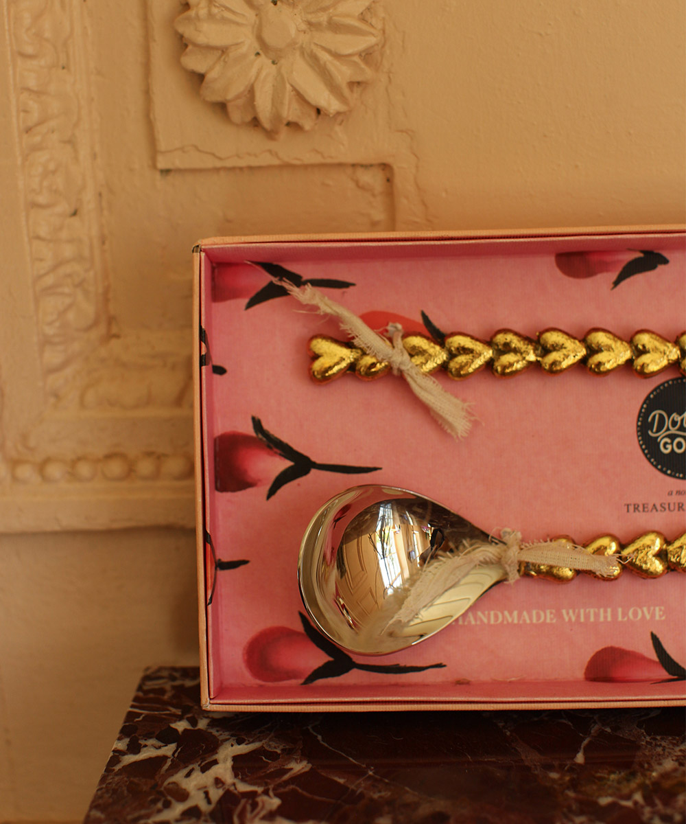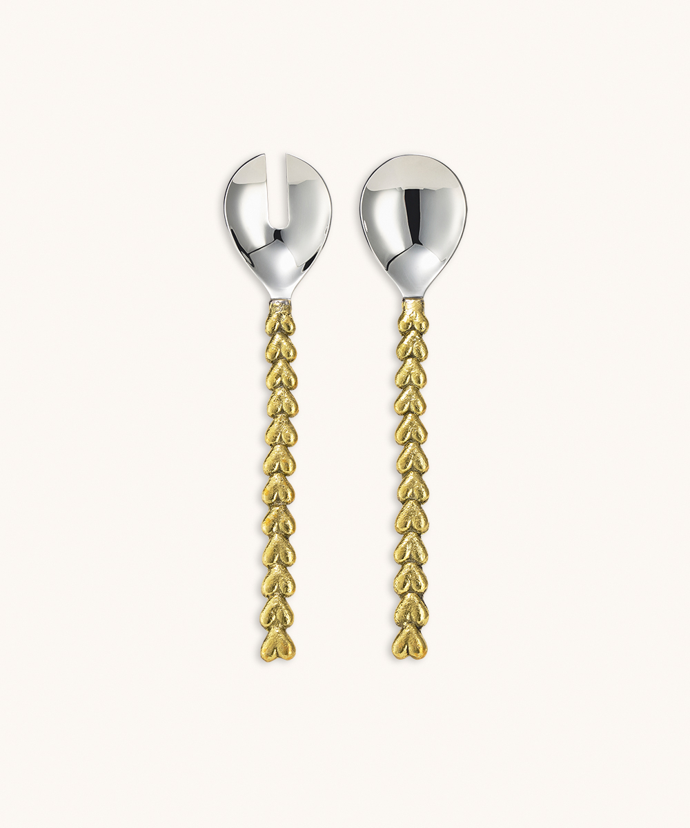 Set de Couverts à Salade Holly Cœur – Laiton et Acier Inoxydable – Coffret Cadeau