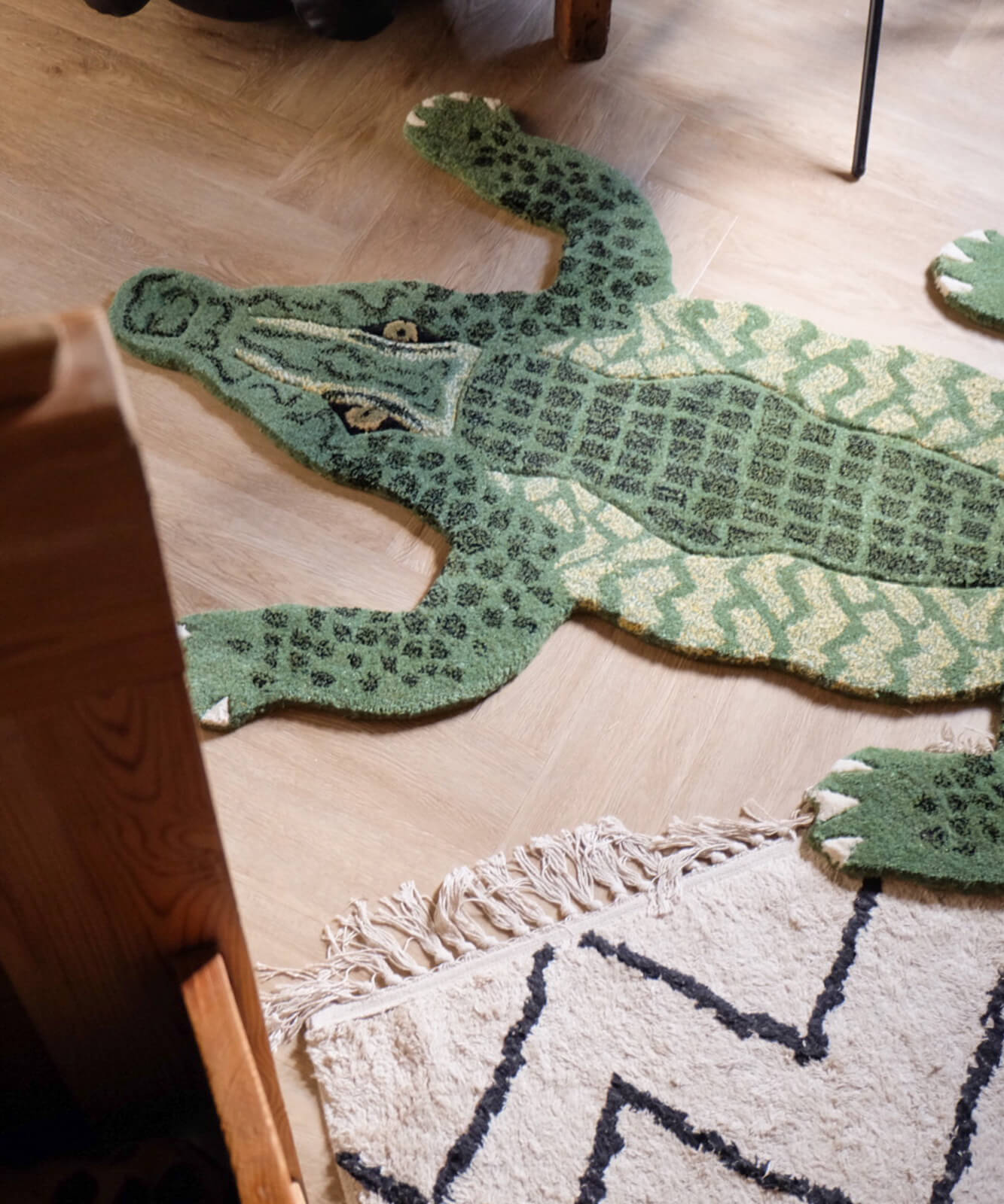 Le tapis Coolio Crocodile Small fait partie de notre propre collection Tapis Amis ; une gamme décalée d’adorables créatures du règne animal qui vous donneront le sourire.