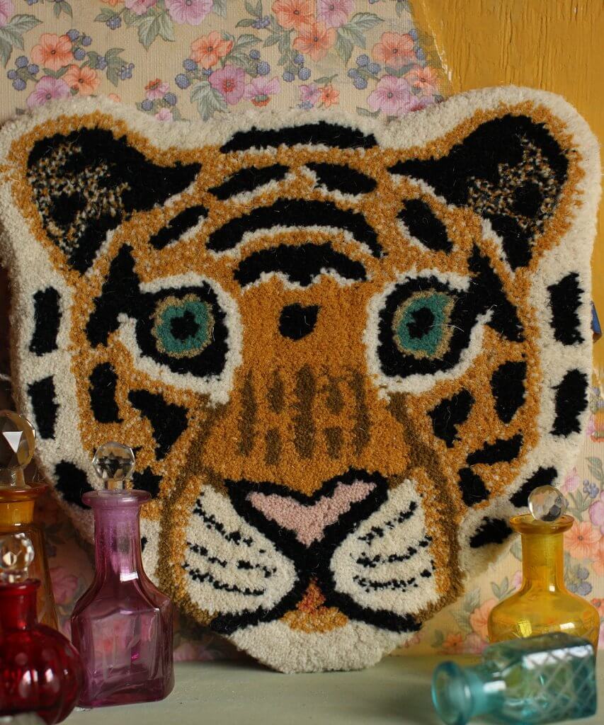 Ce charmant tapis tête Cloudy Tiger peut être utilisé comme décoration murale ou pour accentuer votre sol ou votre banquette. Il égayera n'importe quelle pièce.