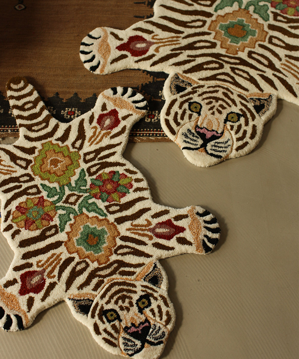Measuring 90 x 63 x 2 cm, the rug is ideal for smaller spaces like a nursery, kids’ room, or reading corner. The rich texture and combination of tiger stripes and colorful flowers make this piece more than just a rug – it’s a statement in any room.