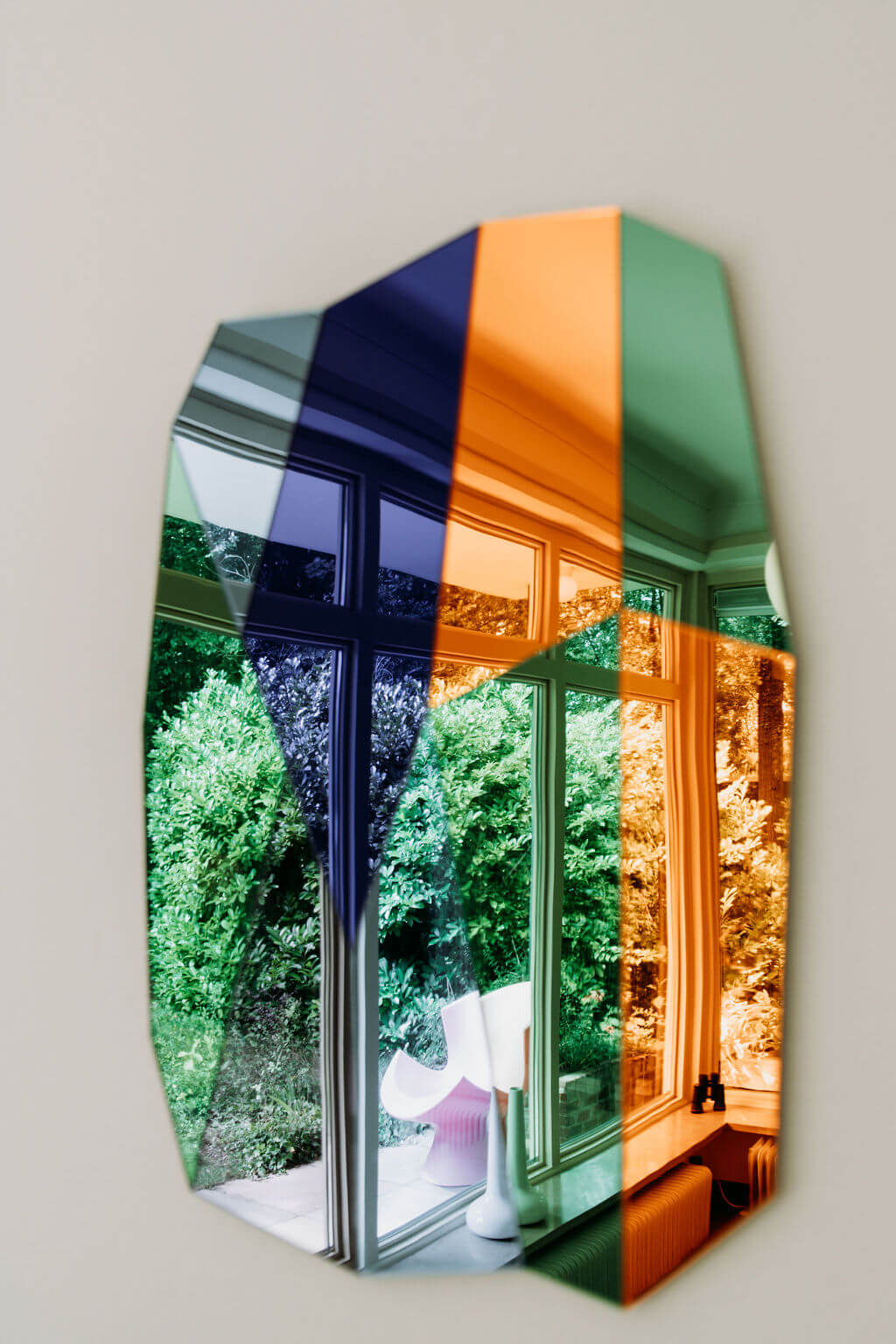 Arabella: “The orange Artifort chair suits the bungalow well, even though it is a recent item from the early 2000s. As do the mo man tai art mirror and the rug by the seating area. The original pass-through cupboard between the dining area and kitchen is a real eye-catcher. The furniture and decoration do not all have to be from the mid-century period. Sometimes modern accessories fit in just as well. That mix keeps it interesting.”