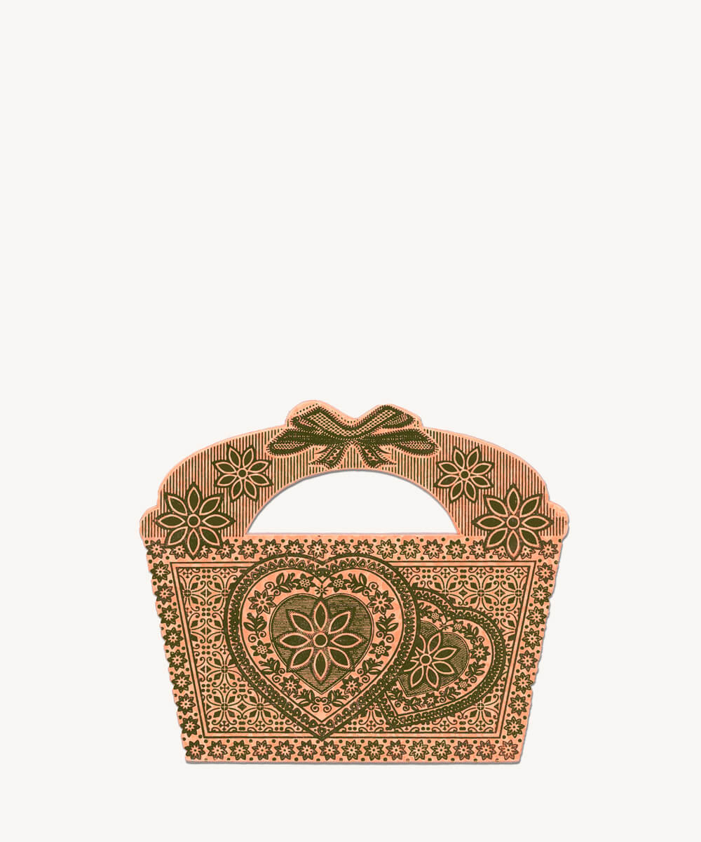 The cards are beautifully presented in a decorative paper pouch with intricate patterns and heart-shaped details. Not only does this pouch complete the presentation, it also keeps the From To Cards neatly together.