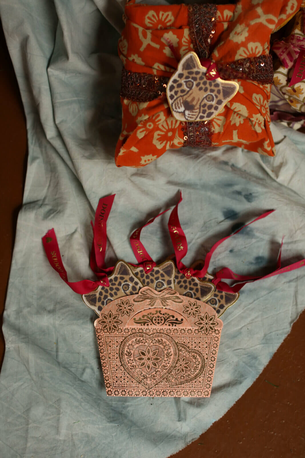 Set of leopard head cards with a ribbon