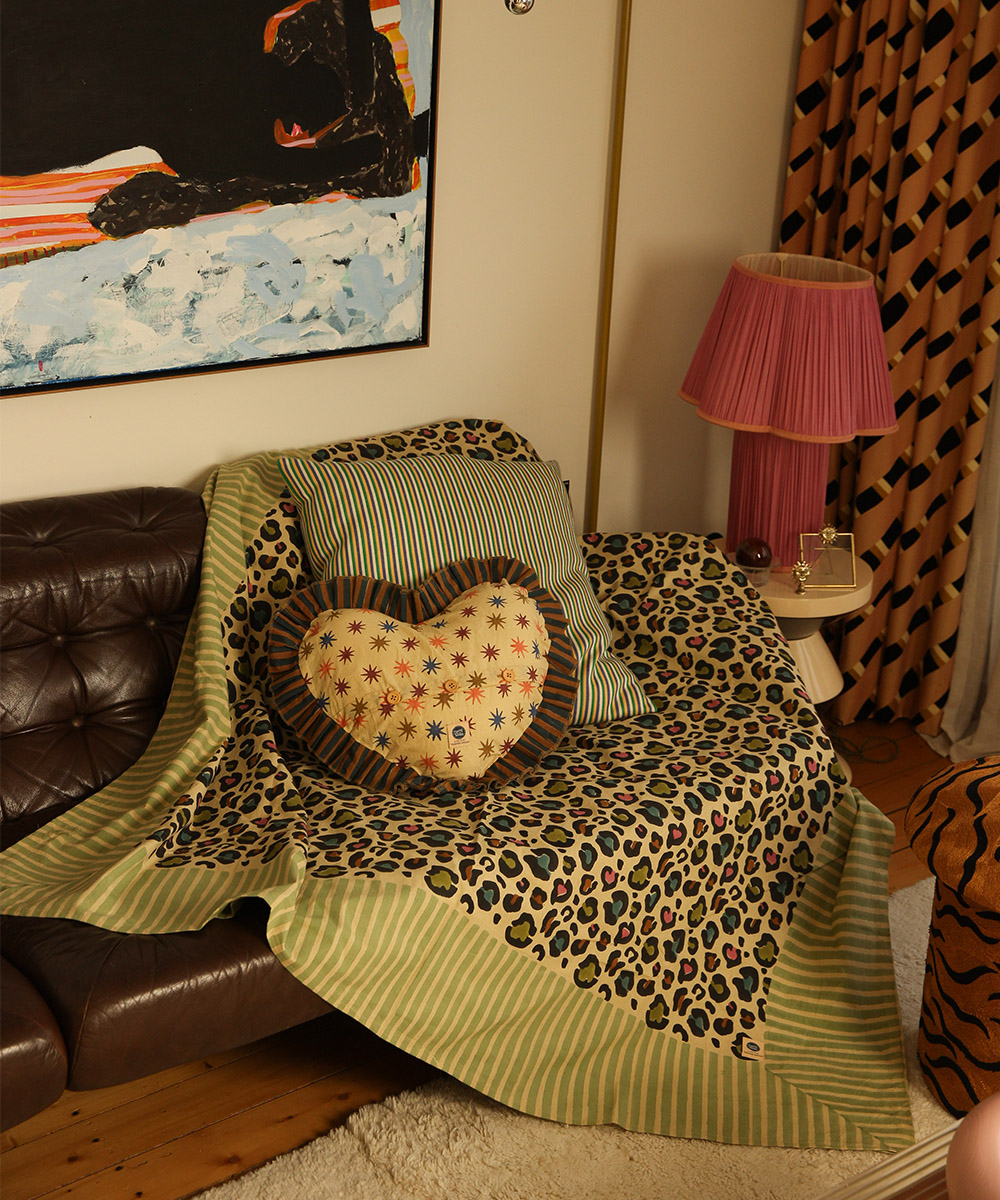 Geef je huis of buitenruimte een stijlvolle, speelse uitstraling met het Disco Leopard Tafelkleed. Met zijn opvallende luipaardprint en frisse groene accenten is het een perfecte combinatie van speels en chic. Handgemaakt in India met traditionele blockprint-technieken, is dit veelzijdige...