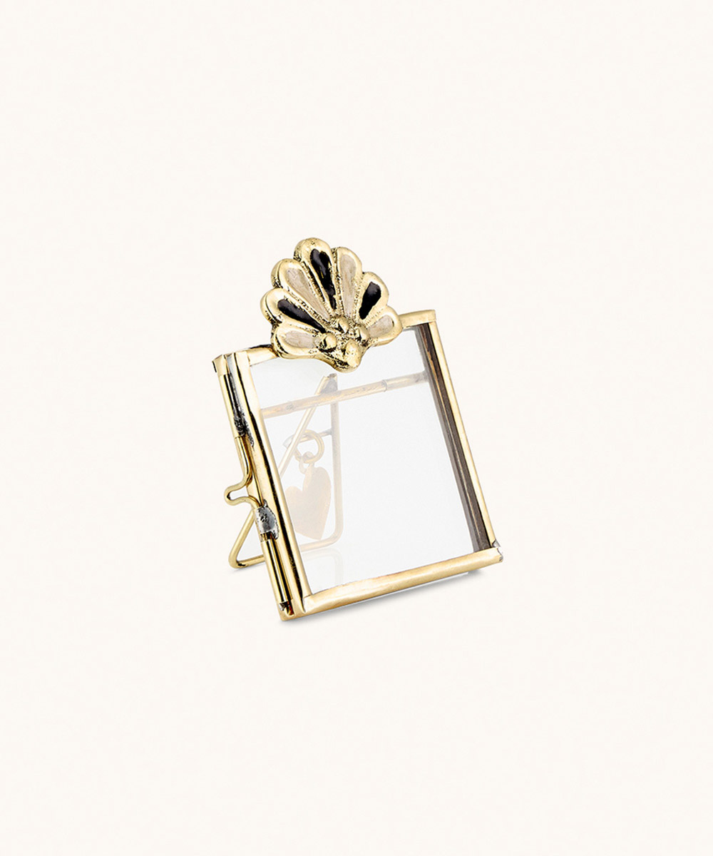Dit prachtige, compacte fotolijstje (afmetingen: 7 x 5,5 x 0,8 cm) is een toonbeeld van vakmanschap, ethisch met de hand vervaardigd uit gerecycled messing en glas door onze vakkundige ambachtslieden in India. Het middelpunt, een klavertje vier, is met zorg...