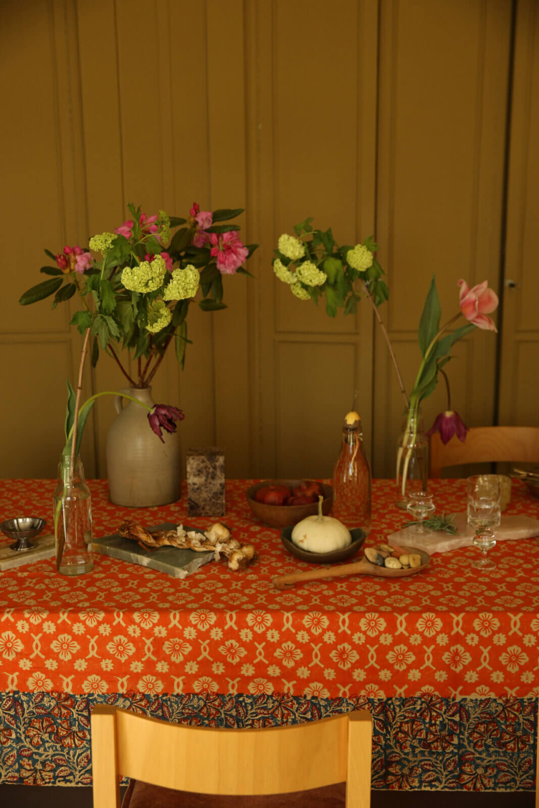 Transformeer je ruimte met de Ulla Double Plaid in draagtas, een prachtig handgemaakt stuk dat een echte blikvanger is. Met een royale afmeting van 220 x 270 cm is deze double throw groot genoeg om een tweepersoonsbed te bedekken, waardoor het een perfecte aanvulling is op je slaapkamer. Het levendige oranje bloemenpatroon met een elegante blauwe rand voegt een vrolijke en stijlvolle touch toe aan elke ruimte. Elke throw is met de hand block-geprint, wat hem echt uniek maakt.