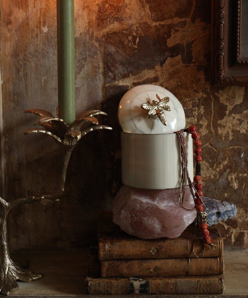 Experience the whimsical allure of the Queen Bee Circus Box, designed to add a touch of elegance to your home decor. Each box, measuring 9.5 x 9.5 x 11 cm, is lovingly handmade. And reflecting the vibrant culture and skilled artistry of local communities. Here you can have some inspiration to style it! Perfect for in you bathroom or on you make desk to keep all treasures in.