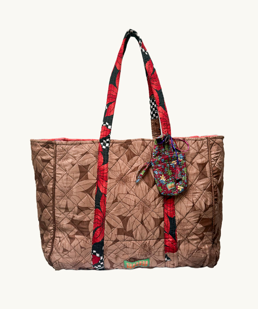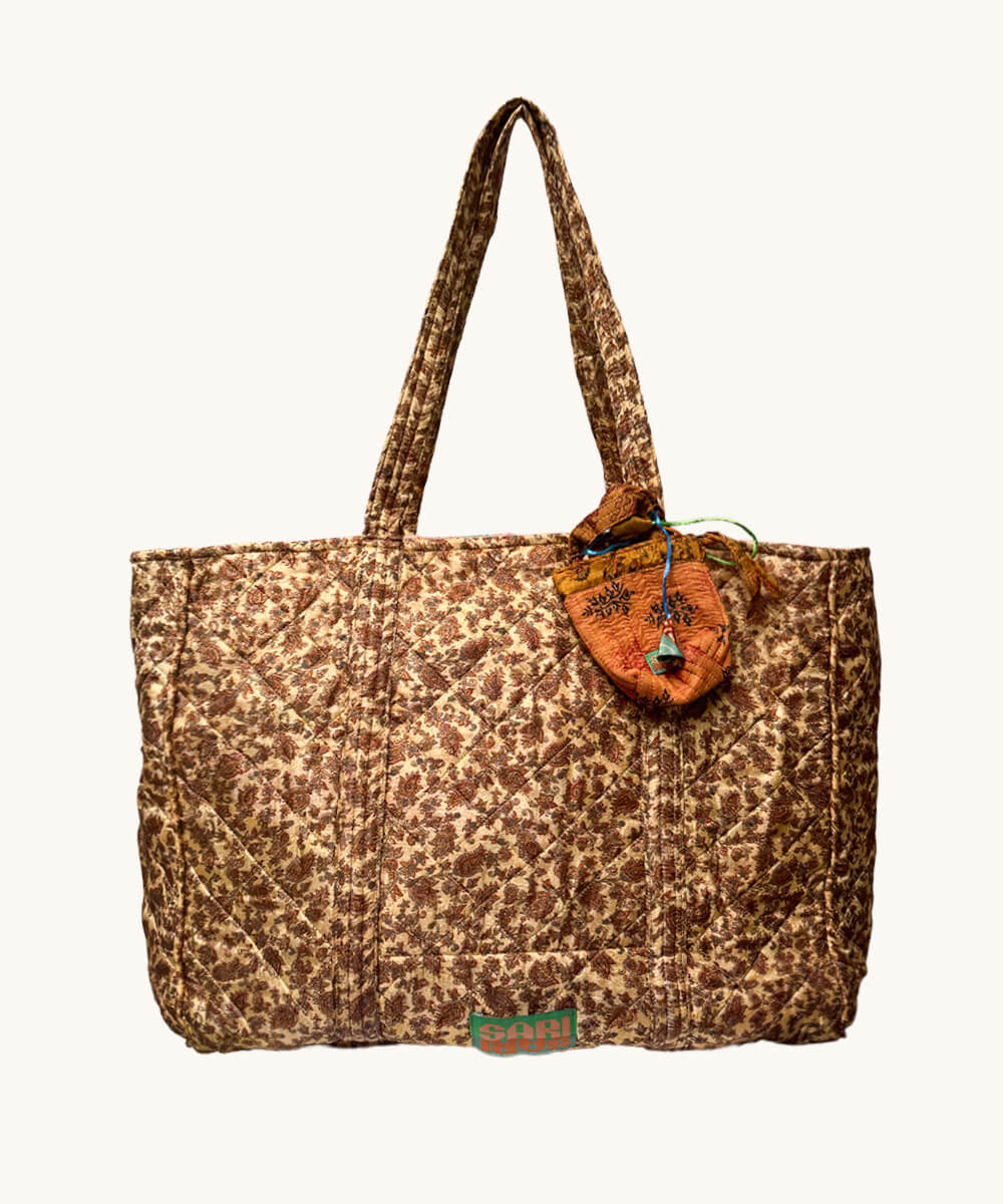 The Ava Ava Sari Bag is lovingly handcrafted from a vintage sari once worn during meaningful, joy-filled moments. The soft, quilted fabric gives the bag a gentle, cushioned feel, while the sari’s distinctive pattern makes each piece truly one-of-a-kind.