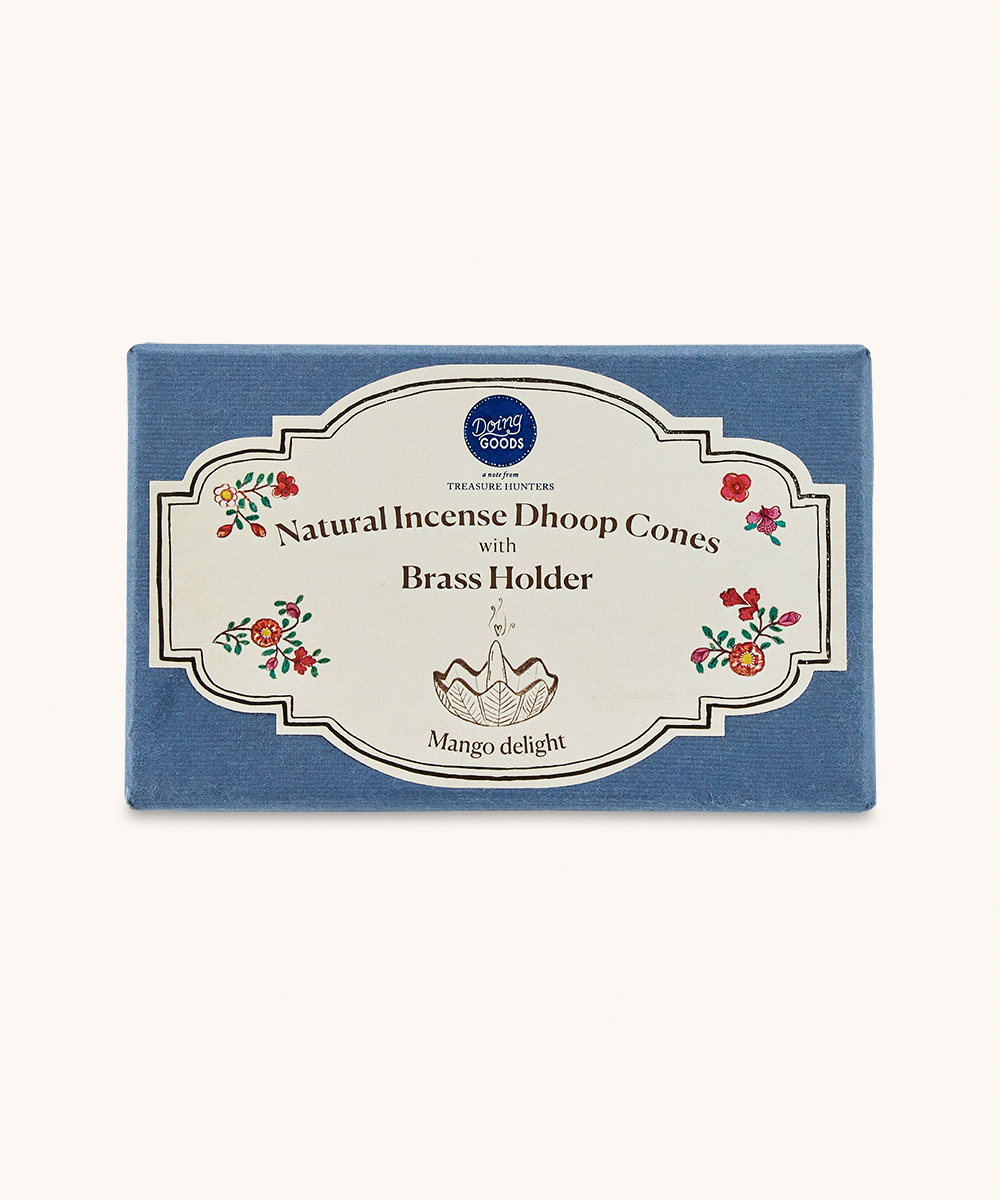 Bring a touch of calm and fragrance into your home with the Mango Delight Incense Cones Gift Set. This beautifully packaged set includes natural incense dhoop cones with a handmade brass holder, perfect for creating a soothing, aromatic atmosphere.