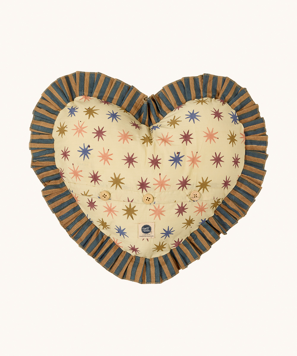 Add a touch of love and whimsy to your space with the Noa Star Heart Pillow. Made with inspiration from the new throw collection, this charming heart-shaped cushion features a playful star pattern and soft ruffled edges. Measuring 19.7 x 18.9 x 4.7 inches, it’s the perfect decorative piece to brighten up a kids' room, nursery, or cozy nook. Whether as a thoughtful gift for your loved one or as a unique addition to your home decor, this heart pillow brings comfort and style.
