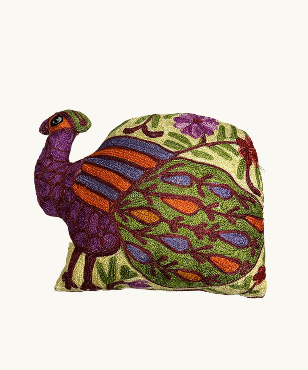 This fully embroidered peacock pillow with colorful motifs makes it the happiest item in every home.