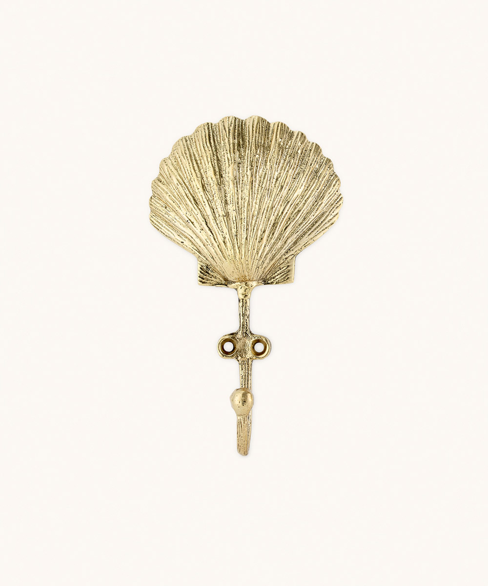 This hanging hook is more than just practical. With its elegant shell design and brass finish, it serves as a refined wall detail that brings personality to any space—from entryway to bathroom. Use it alone or in a set to create a stylish and organized atmosphere.