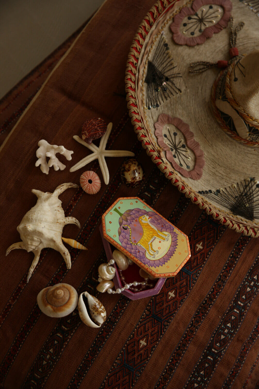 The Very Berry Tiger Box Large is a bold and playful storage box, perfect for holding your favourite keepsakes. Handmade by artisans using papier-mâché and brass, it features a joyful tiger illustration and colourful patterns that bring a fun twist...